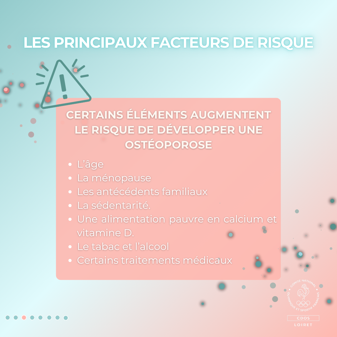 Certains éléments augmentent le risque de développer une ostéoporose :