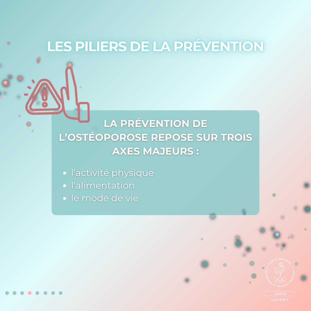 La prévention de l’ostéoporose repose sur trois axes majeurs : l’activité physique, l’alimentation et le mode de vie.