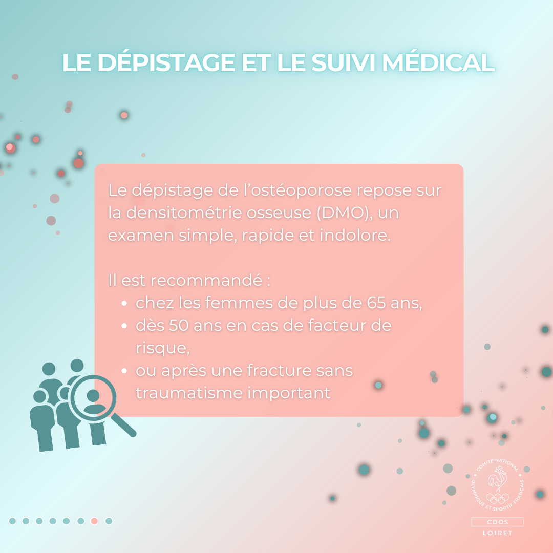 Un suivi régulier permet d’adapter les mesures préventives et de prescrire un traitement si nécessaire (vitamine D, calcium, biphosphonates, etc… ).