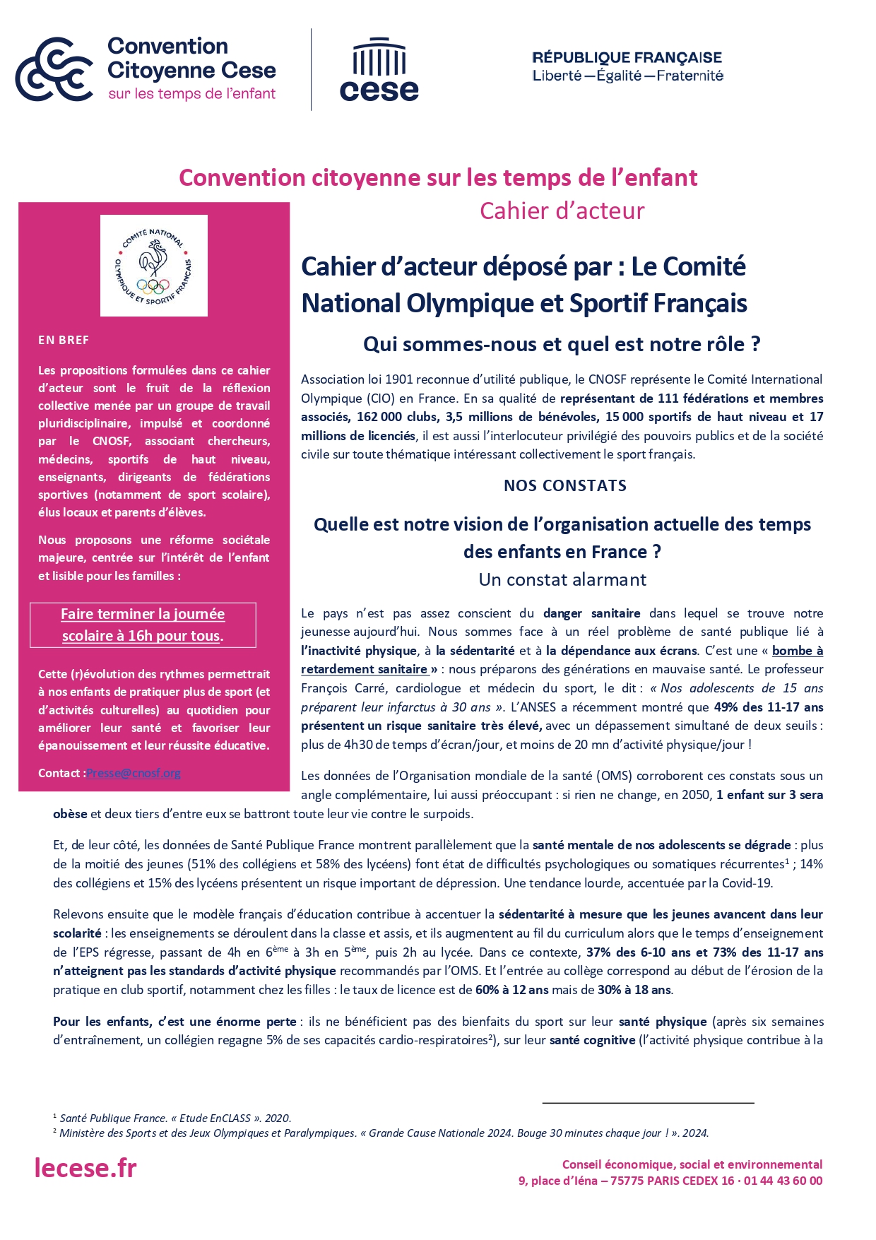 Cahier d’acteur déposé par : Le Comité National Olympique et Sportif Français