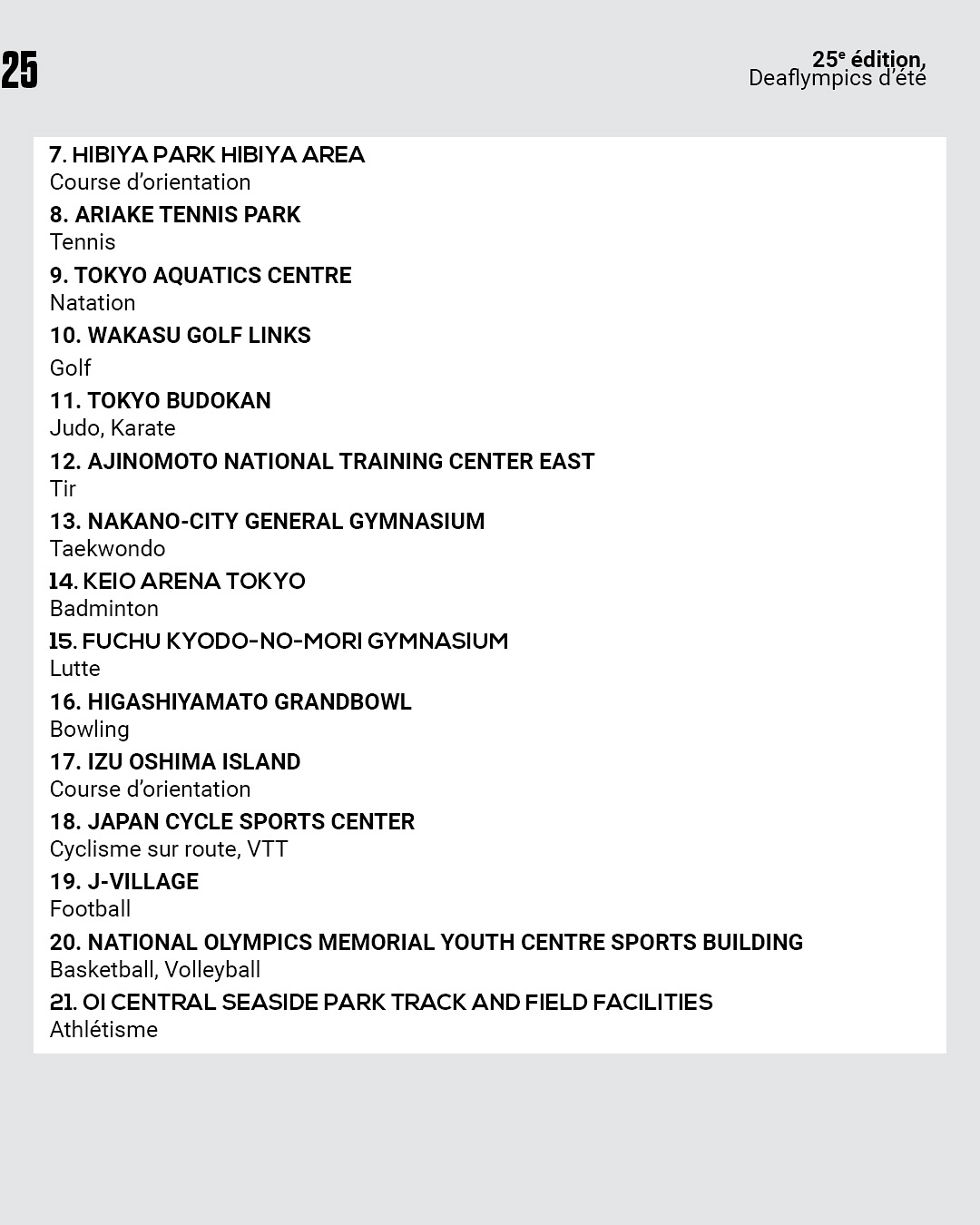 La 25ème édition des Deaflympics d’été se déroulera du 15 au 26 novembre 2025 à Tokyo, au Japon. Cet événement marquera le 100ᵉ anniversaire des tout premiers Deaflympics, organisés à Paris en 1924. Au programme de cette édition : 21 disciplines sportives, plus de 3 000 athlètes et plus de 70 nations représentées.