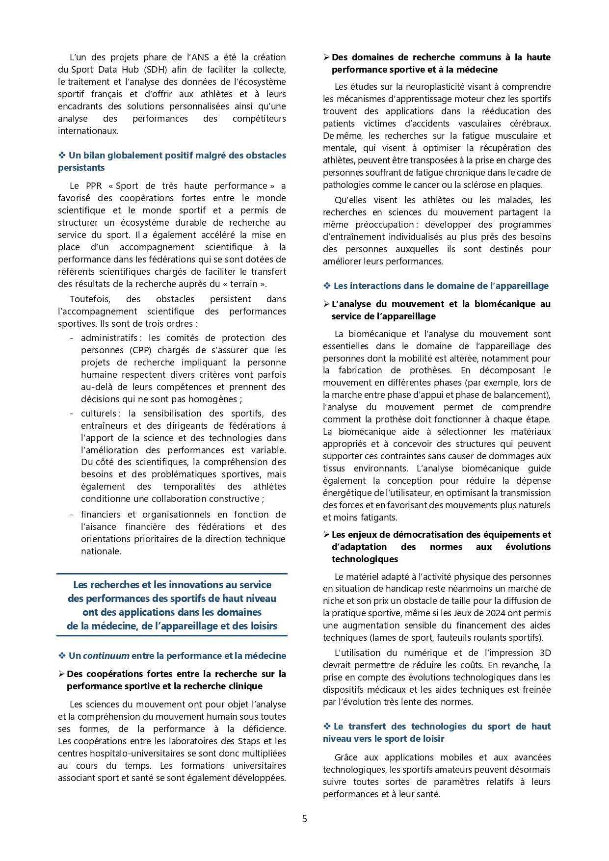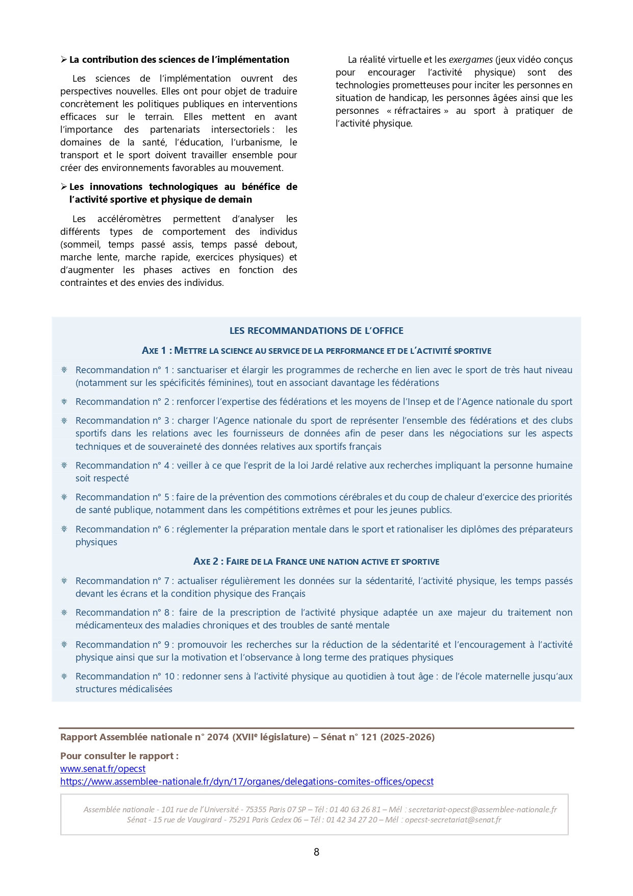 Le rapport de l’Office analyse l’impact des sciences et des technologies à la fois dans le sport de haut niveau et dans la pratique de l’activité physique. Il formule des recommandations pour renforcer durablement l’accompagnement scientifique à la performance et à l’activité sportive et pour faire de la France une nation sportive et pas seulement une nation de sportifs.