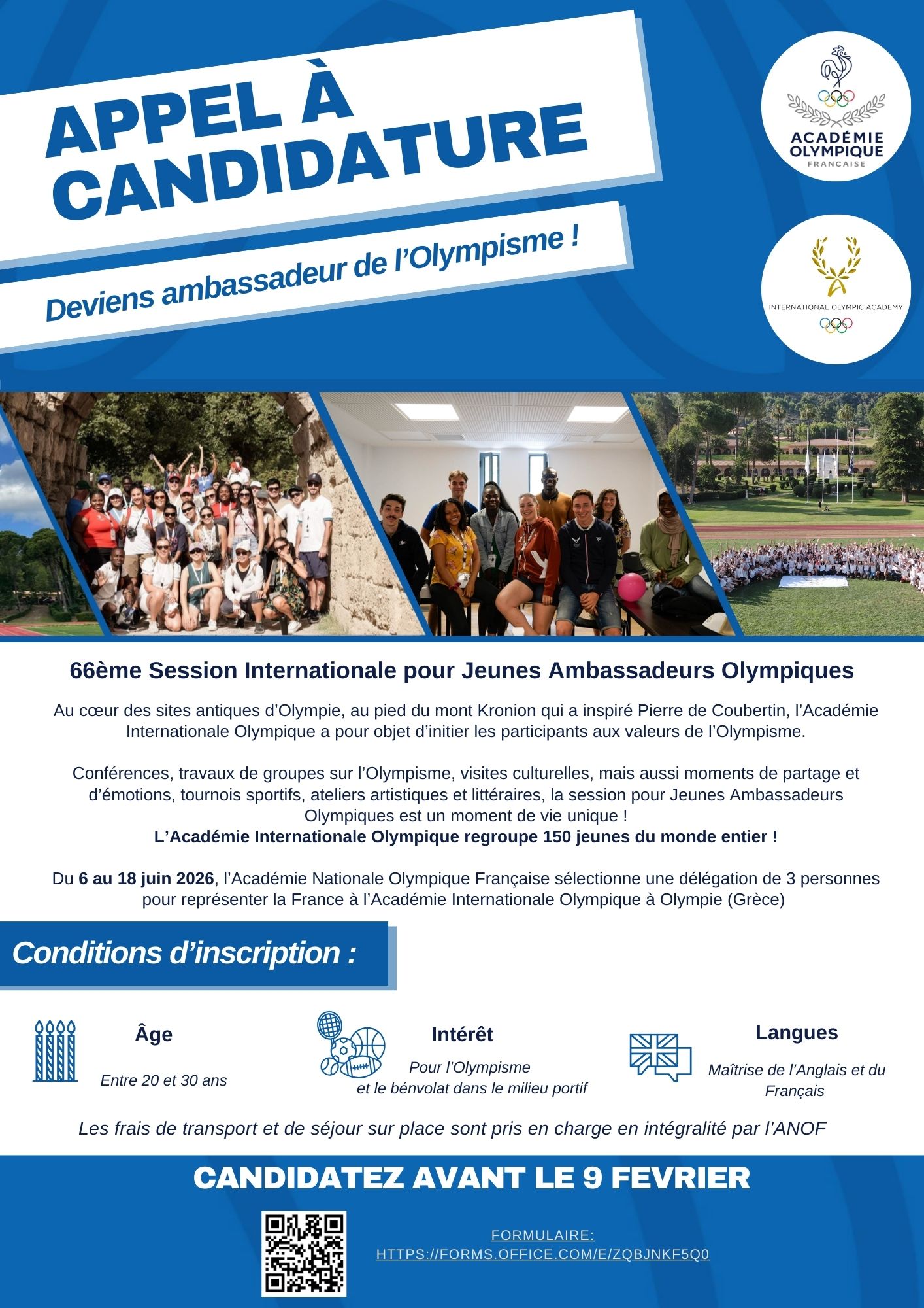 L’Académie Nationale Olympique Français (ANOF), représentante de l’AIO sur le territoire français, propose trois candidatures pour cette session.
