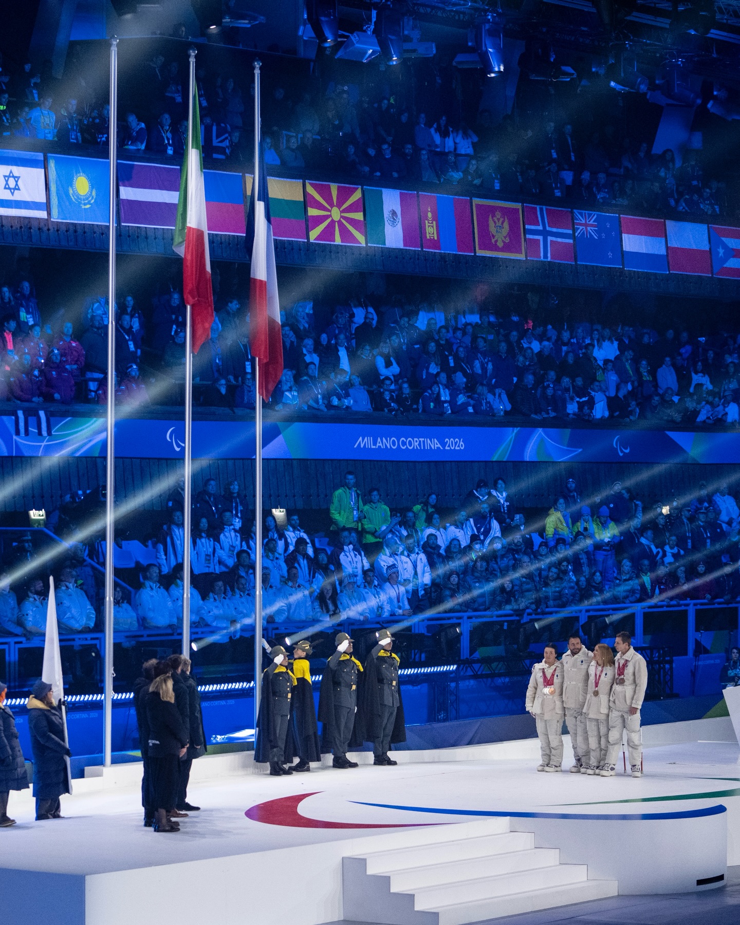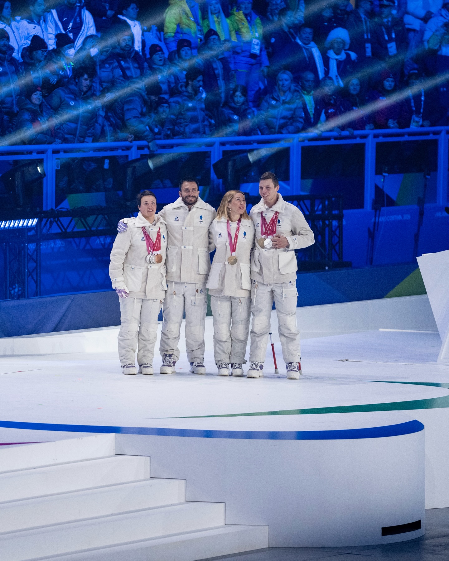 Les cérémonies ont également constitué des temps forts pour la délégation française. La cérémonie de clôture a réuni les athlètes du para ski alpin et du para snowboard ; le collectif du para nordique préférant rester à Tesero et retrouver toute l’équipe le lendemain à l’occasion du Retour à la maison à Chamrousse. Cette cérémonie a également été marquée par un moment symbolique avec la passation du drapeau paralympique aux Alpes françaises 2030, en présence de Cécile Hernandez et Jordan Broisin, porte-drapeaux de la délégation paralympique, et Arthur Bauchet et Aurélie Richard, athlètes paralympiques français les plus médaillés aux Jeux.