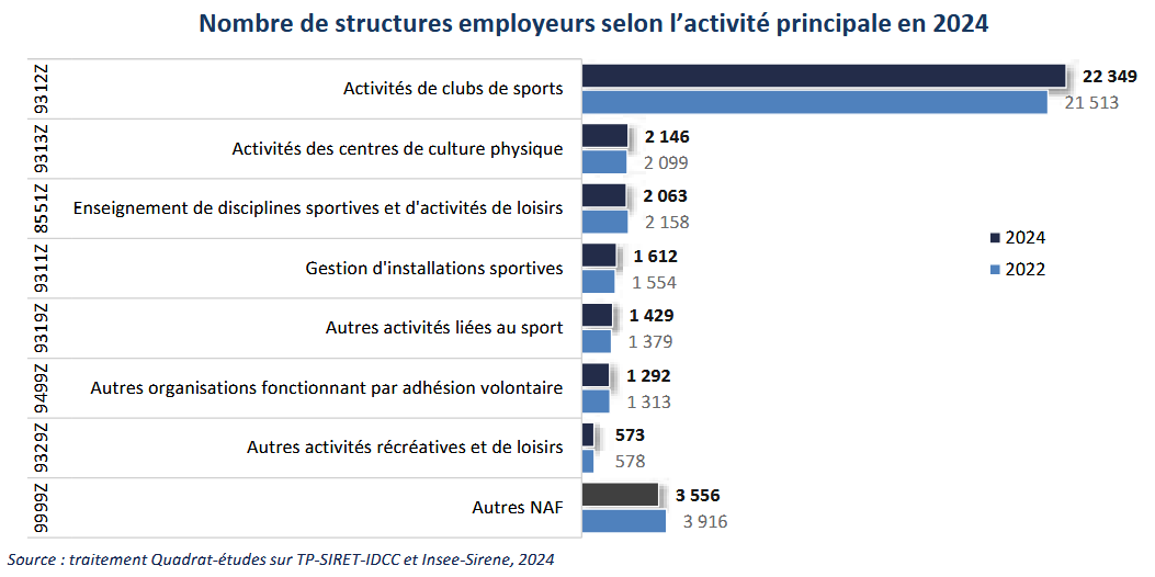 La branche compte 35 020 structures employeurs en 2024, un nombre qui a doublé en dix ans. Après une phase d’expansion rapide, la croissance se stabilise. Le secteur reste majoritairement associatif, même si les activités marchandes se développent.