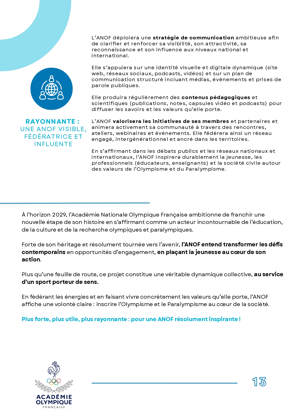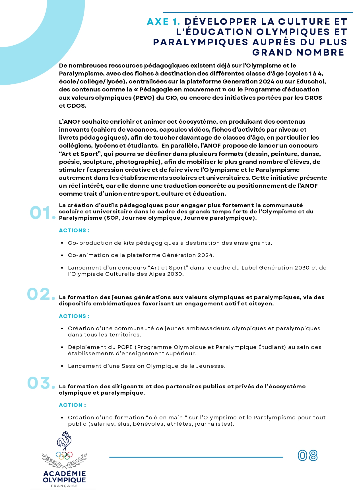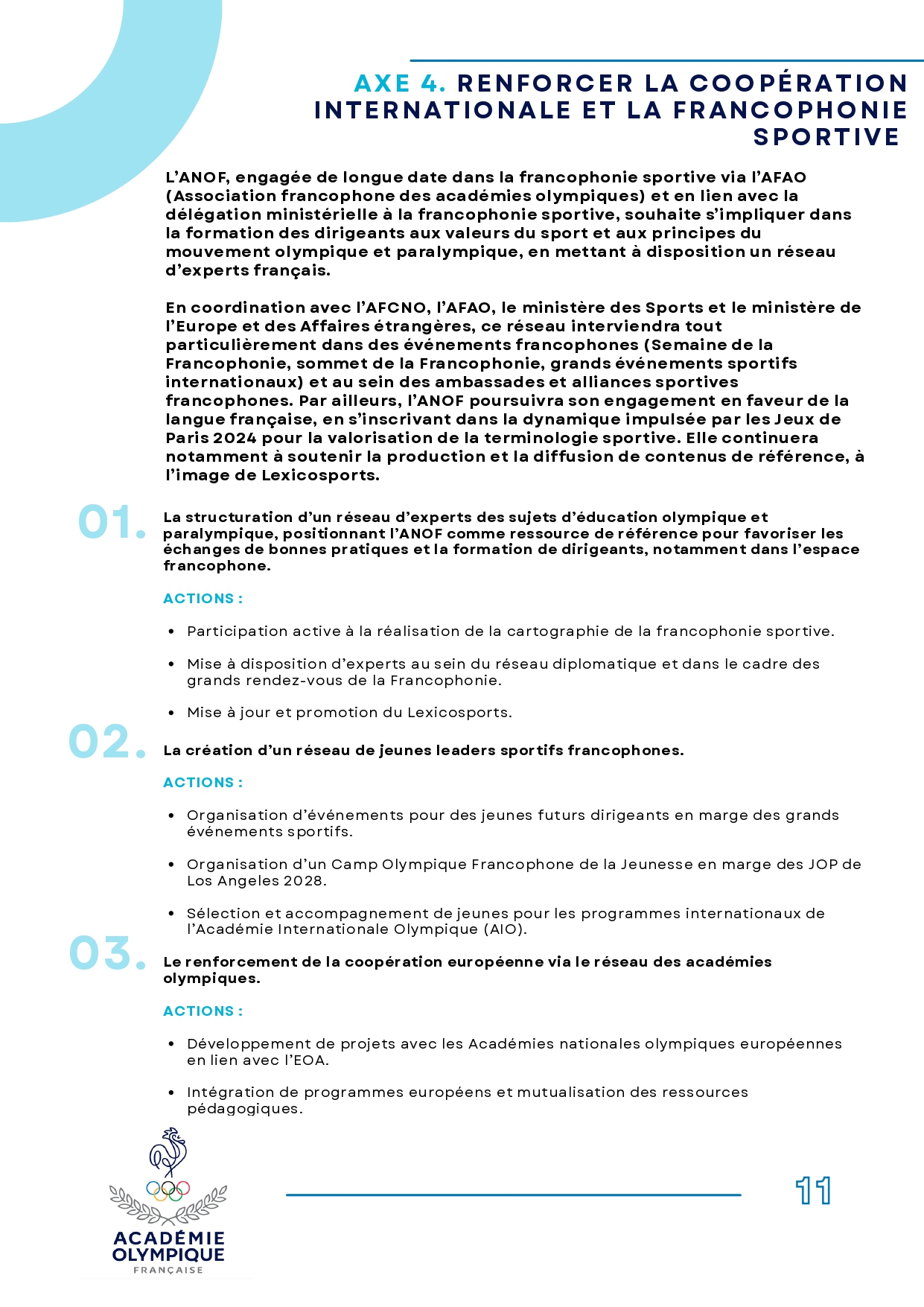 À travers cette nouvelle feuille de route, l’Académie Nationale Olympique Française ambitionne de :